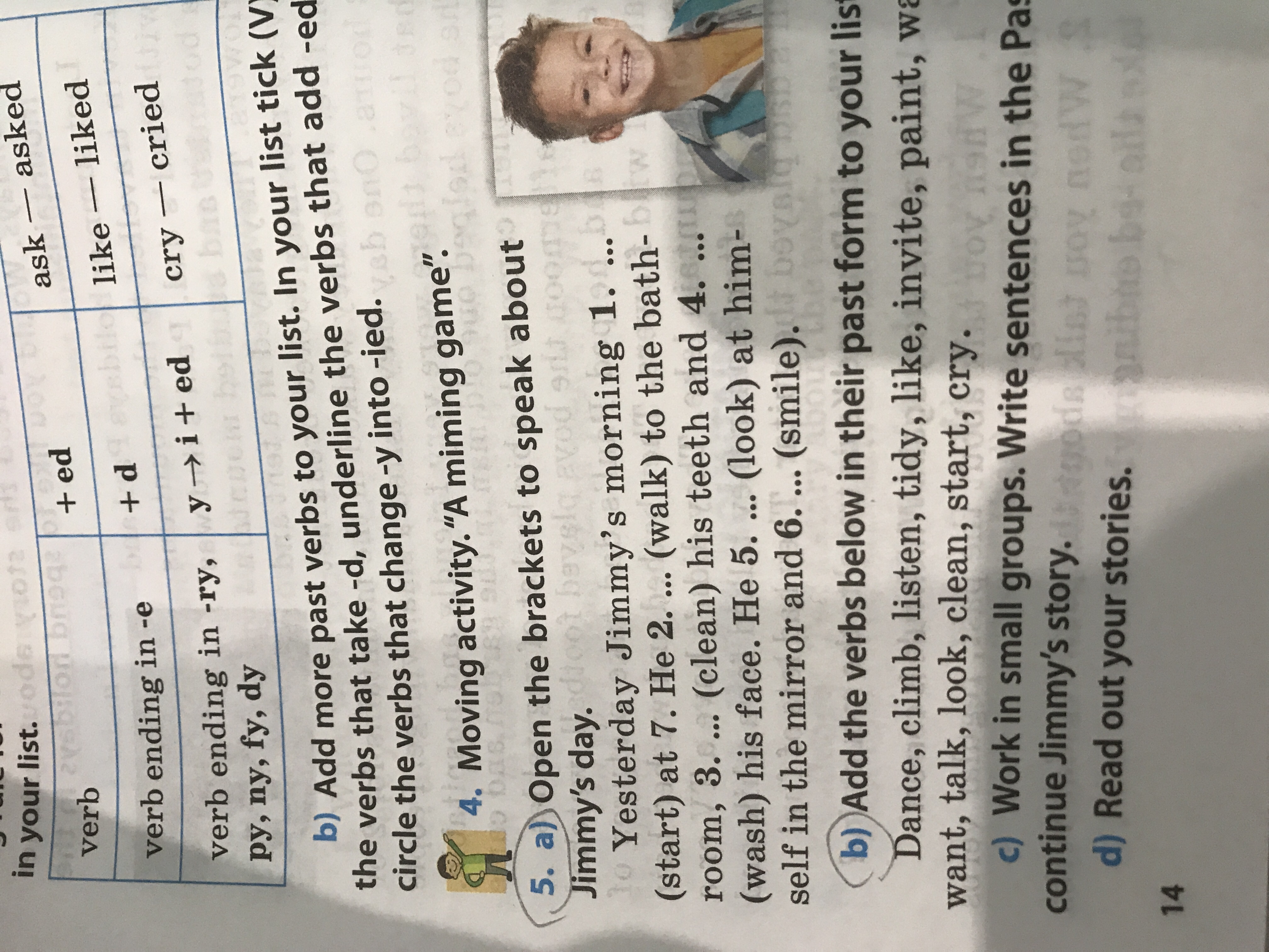 A 1. started, 2. walked, 3cleaned. , washed. 4 looked 5 smiled