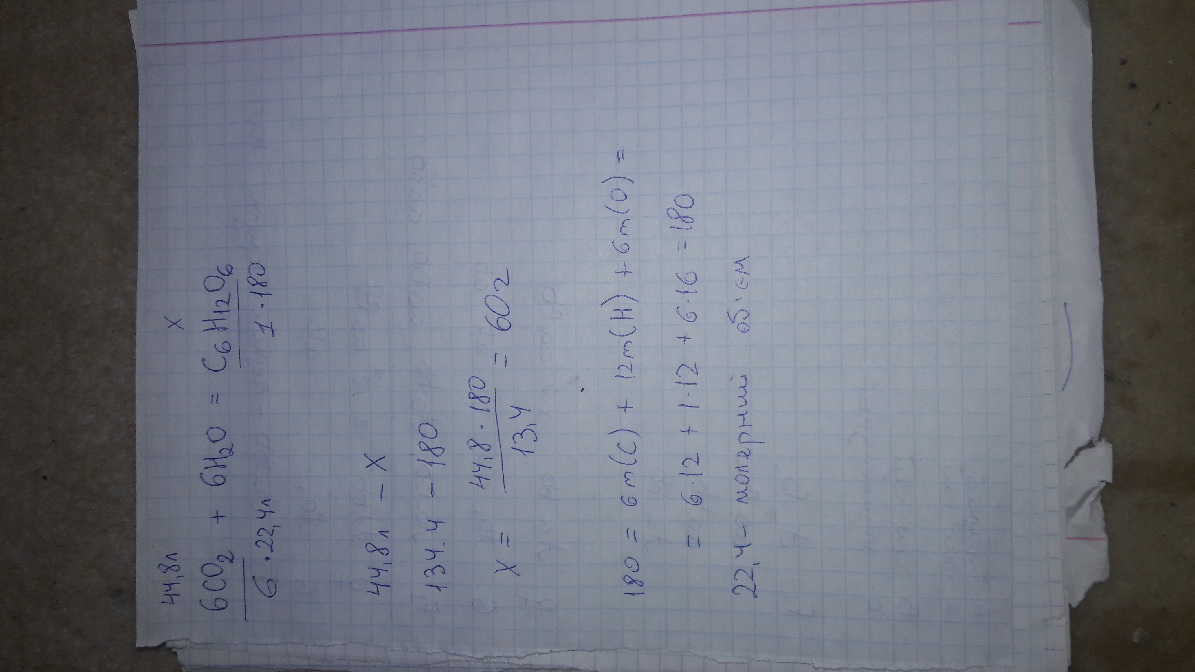 Сколько граммов глюкозы синтезировалось в процессе фотосинтеза при нормальных условиях, если было использовано 44,8 л СО2?