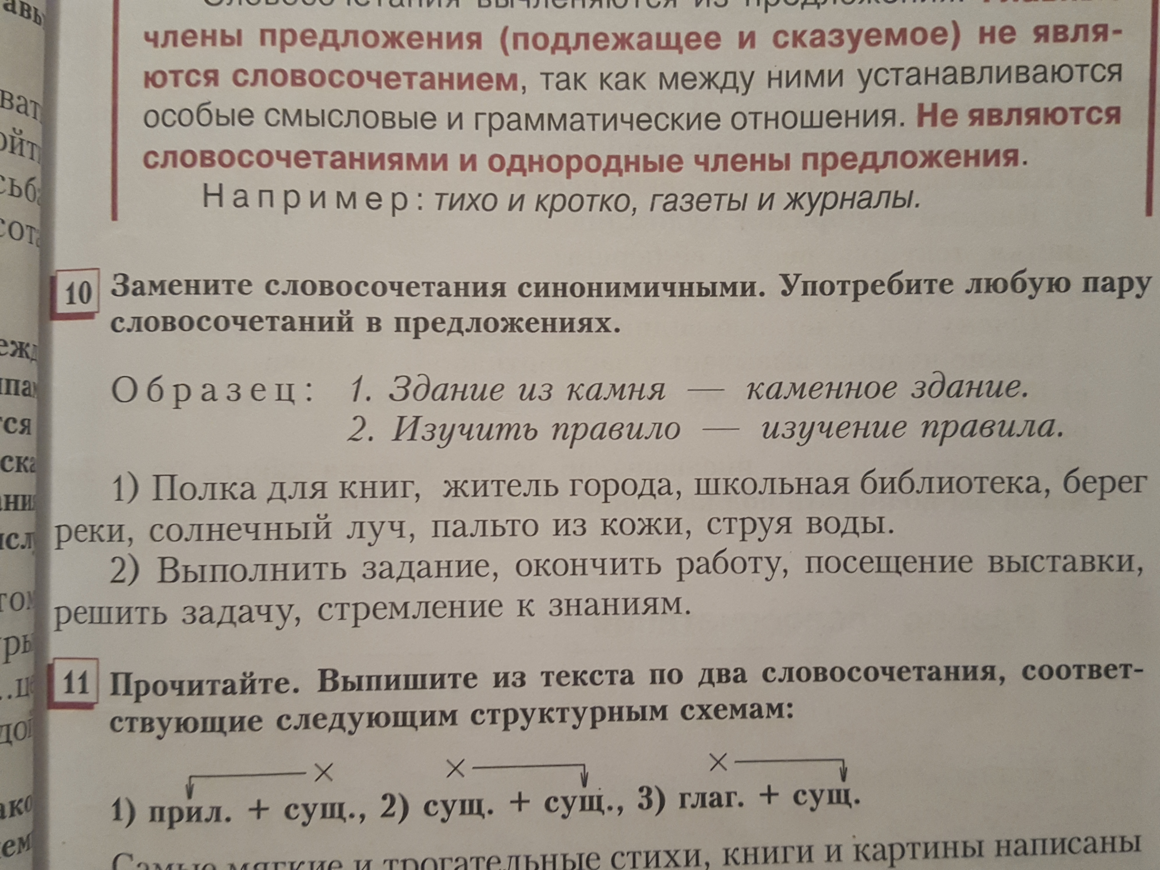 1)Полка для книг-книжная полка, житель города-городской житель, школьная библиотека-библиотека школы, берег реки-чечной берег, солнечный луч-луч солнца, пальто из кожи-кожанное пальто, струя воды-водяная струя.