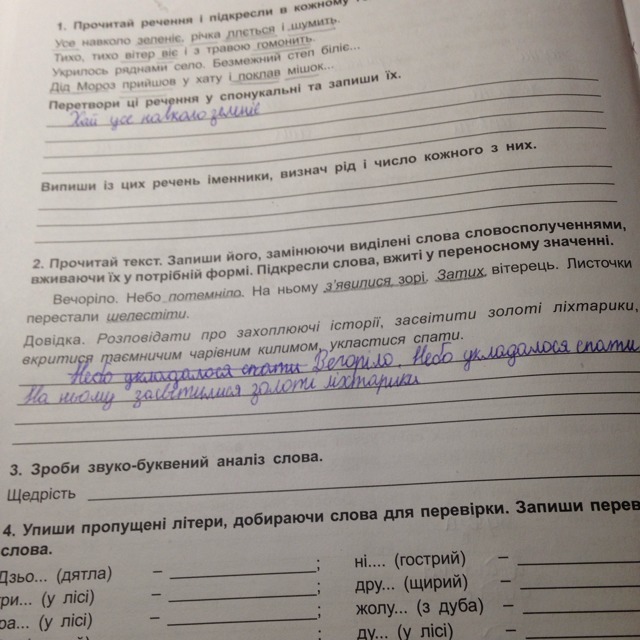 Вечоріло. Небо вкрилося таємничим чарівним килимом. На ньому засвітитися золоті ліхтарики. Вітерець уклався спати. Листочки перестали розповідати про захоплюючі історії.