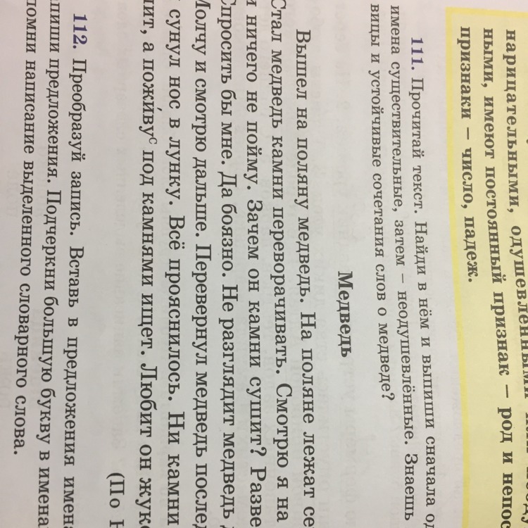Прочитай текст. Найди в нем и выпиши сначала одушевлённые имена существительные, а затем неодушевлённые Упражнение 111