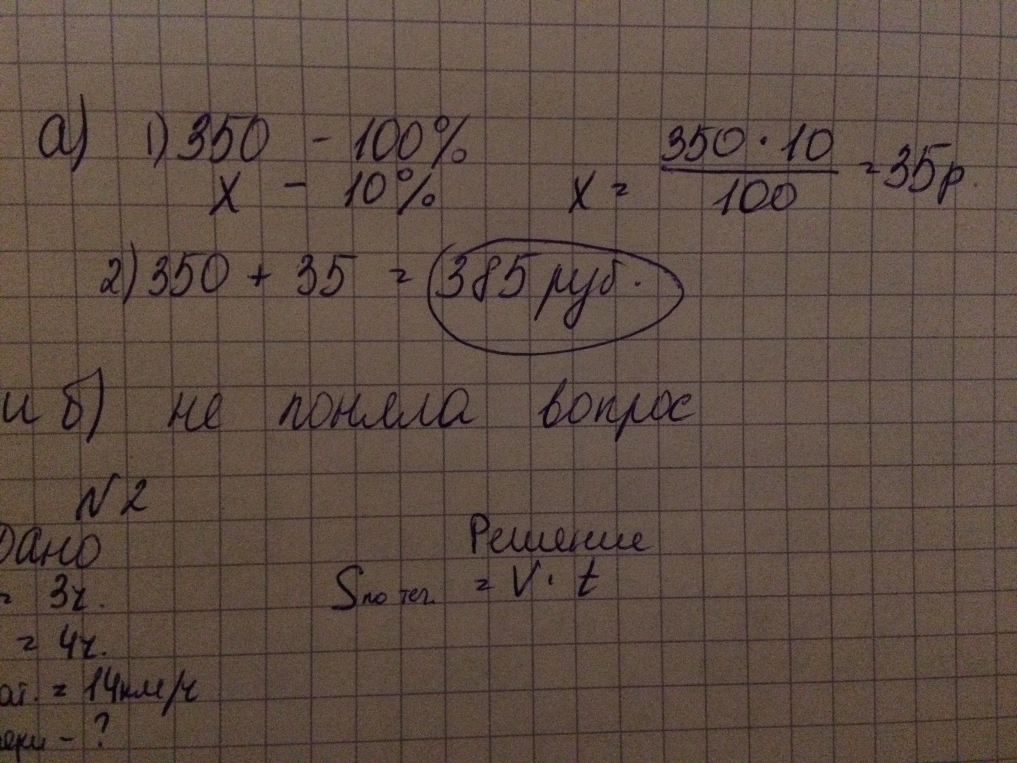 а) Товар стоил 350 руб. .Определите его стоимость после повышения цены на 10%