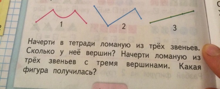 У ломаной из 3-ех звеньев будет 4 вершины. А если начертить ломанную из 3-ех звеньев с 3-мя вершинами - получится треугольник