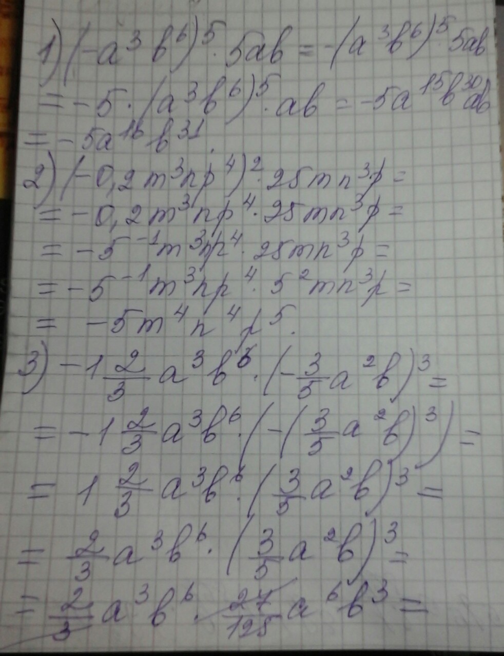 Идет сокращение, дальше = 2a3b6 × 9/125a6b3 = 18/125a9b9