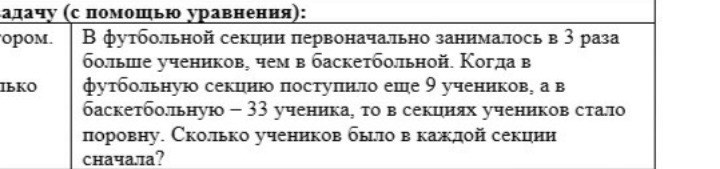 3х учеников было в футбольной секции первоначально. Уравнение:
