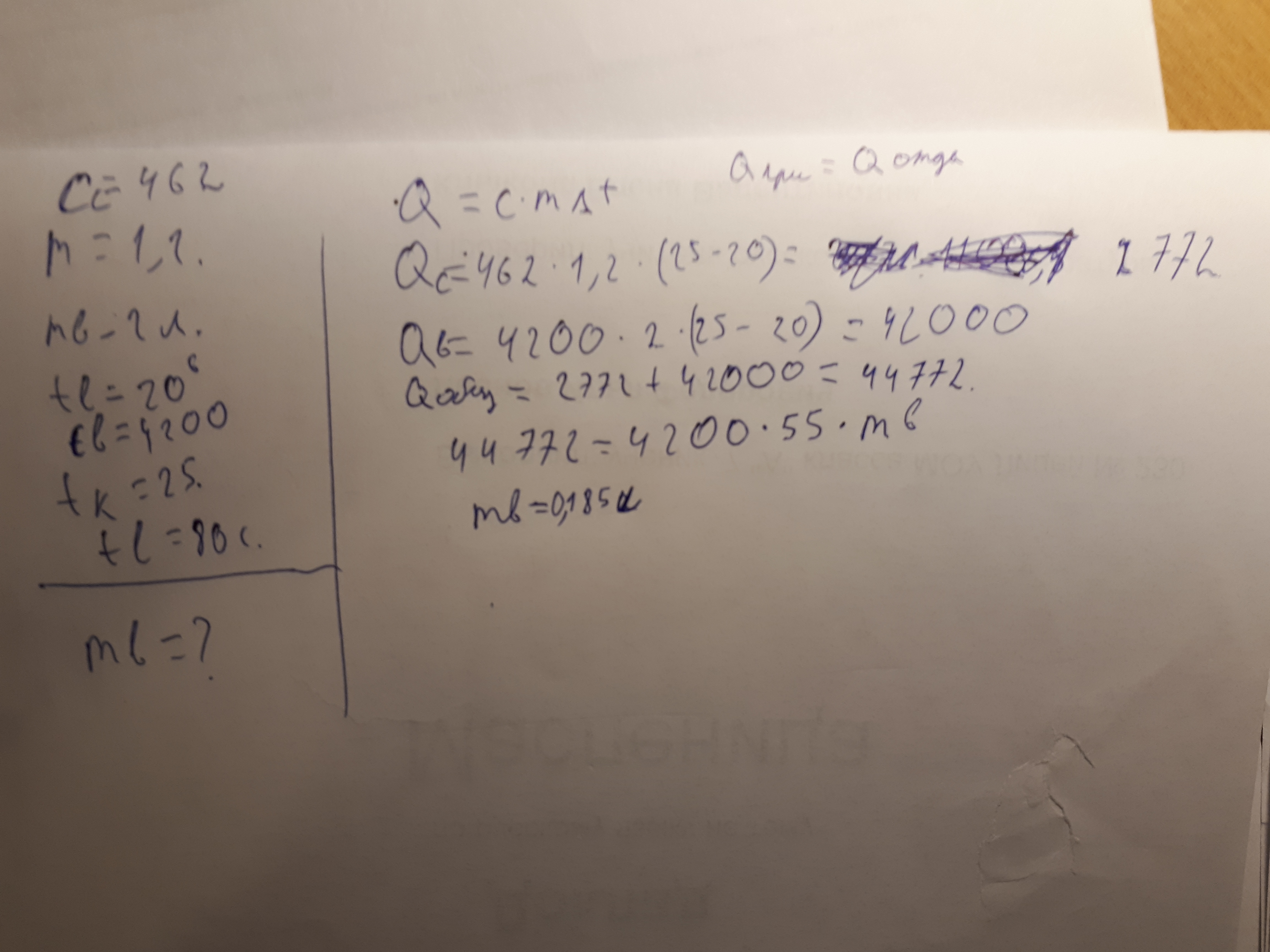 У сталевій каструлі масою 1,2 кг налито 2 літри води з температурою 20С. Необхідно нагріти воду до25С. Скільки води з температурою 80С треба долити?