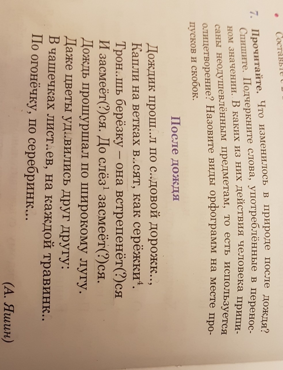 1) Дождик прошёл по садовой (сад) дорожке, капли на ветках висят (висеть), как серёжки.