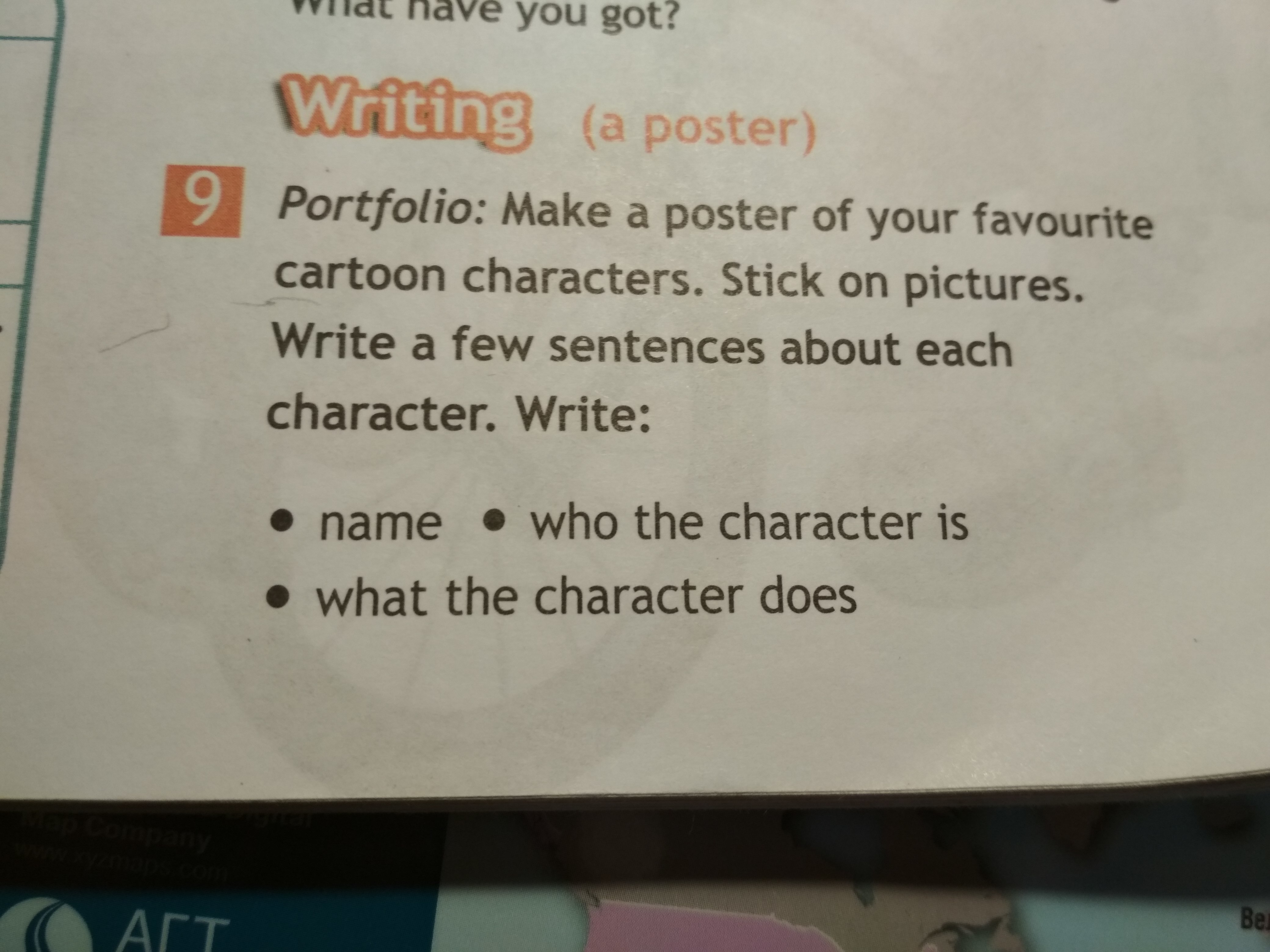 Тут нужно описать любимого персонажа из мультфильма. Наклеить наклейку персонажа. И написать несколько предложений и персонаже. 1- название 2-какой персонаж 3-что делает персонаж
