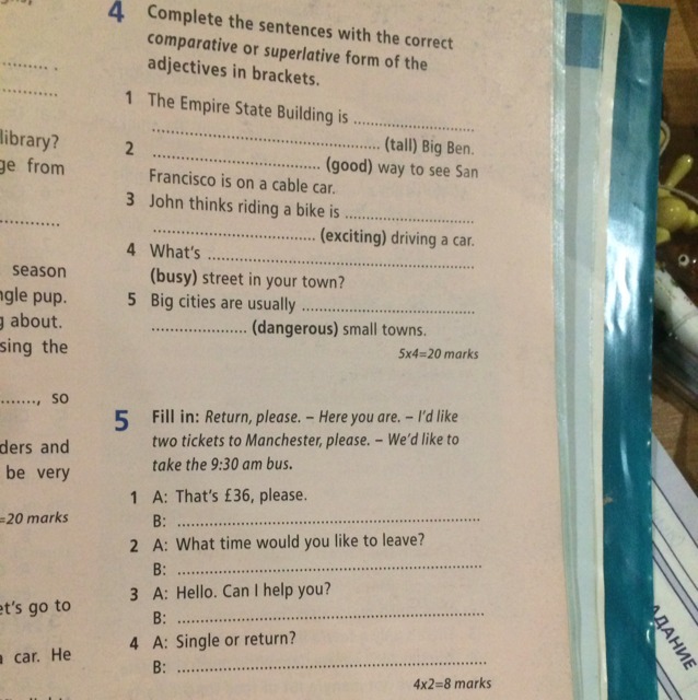 3)I’d like 2 tickets to Manchester, please,