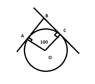 Хорда окружности стягивает дугу 100. Найти угол между касательными, проведенными через концы этой хорды.