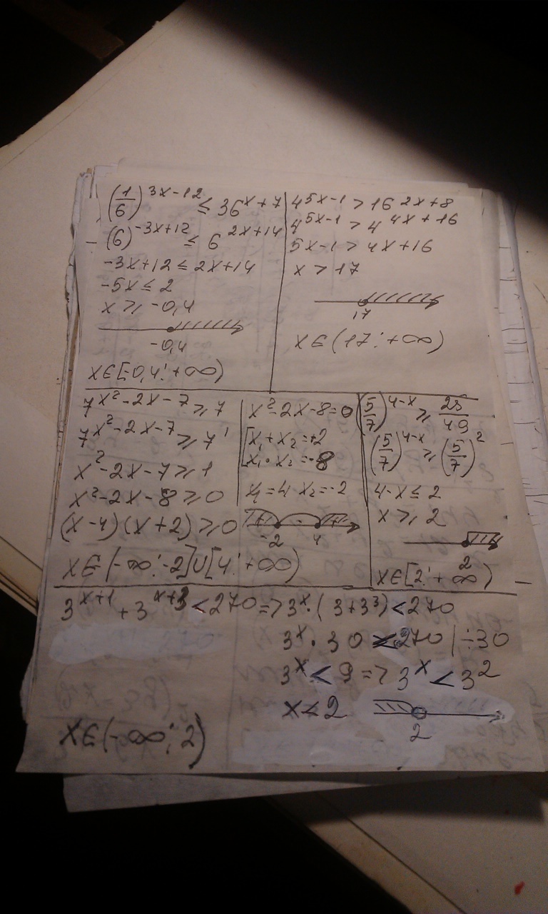 6 ^(-3x+12) ≤ 6^(2*(x+7)) ; * * * 6 >1* * *