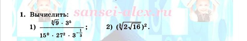 1) ![frac{ sqrt[3]{9} * 3^{5} }{15^{0} *27^{2}*3 ^{- frac{1}{3} } } = frac{3^{ frac{2}{3} } * 3^{5} }{1*3^{6} * 3^{ - frac{1}{3} } } = frac{3^{5 frac{2}{3} } }{ 3^{5 frac{2}{3} } } = 1 frac{ sqrt[3]{9} * 3^{5} }{15^{0} *27^{2}*3 ^{- frac{1}{3} } } = frac{3^{ frac{2}{3} } * 3^{5} }{1*3^{6} * 3^{ - frac{1}{3} } } = frac{3^{5 frac{2}{3} } }{ 3^{5 frac{2}{3} } } = 1](https://tex.z-dn.net/?f=+frac%7B+sqrt%5B3%5D%7B9%7D+%2A+3%5E%7B5%7D++%7D%7B15%5E%7B0%7D+%2A27%5E%7B2%7D%2A3+%5E%7B-+frac%7B1%7D%7B3%7D+%7D++%7D+%3D++frac%7B3%5E%7B+frac%7B2%7D%7B3%7D+%7D+%2A++3%5E%7B5%7D++%7D%7B1%2A3%5E%7B6%7D+%2A+3%5E%7B+-+frac%7B1%7D%7B3%7D+%7D+%7D++%3D++frac%7B3%5E%7B5+frac%7B2%7D%7B3%7D+%7D+%7D%7B+3%5E%7B5+frac%7B2%7D%7B3%7D+%7D+%7D++%3D+1)