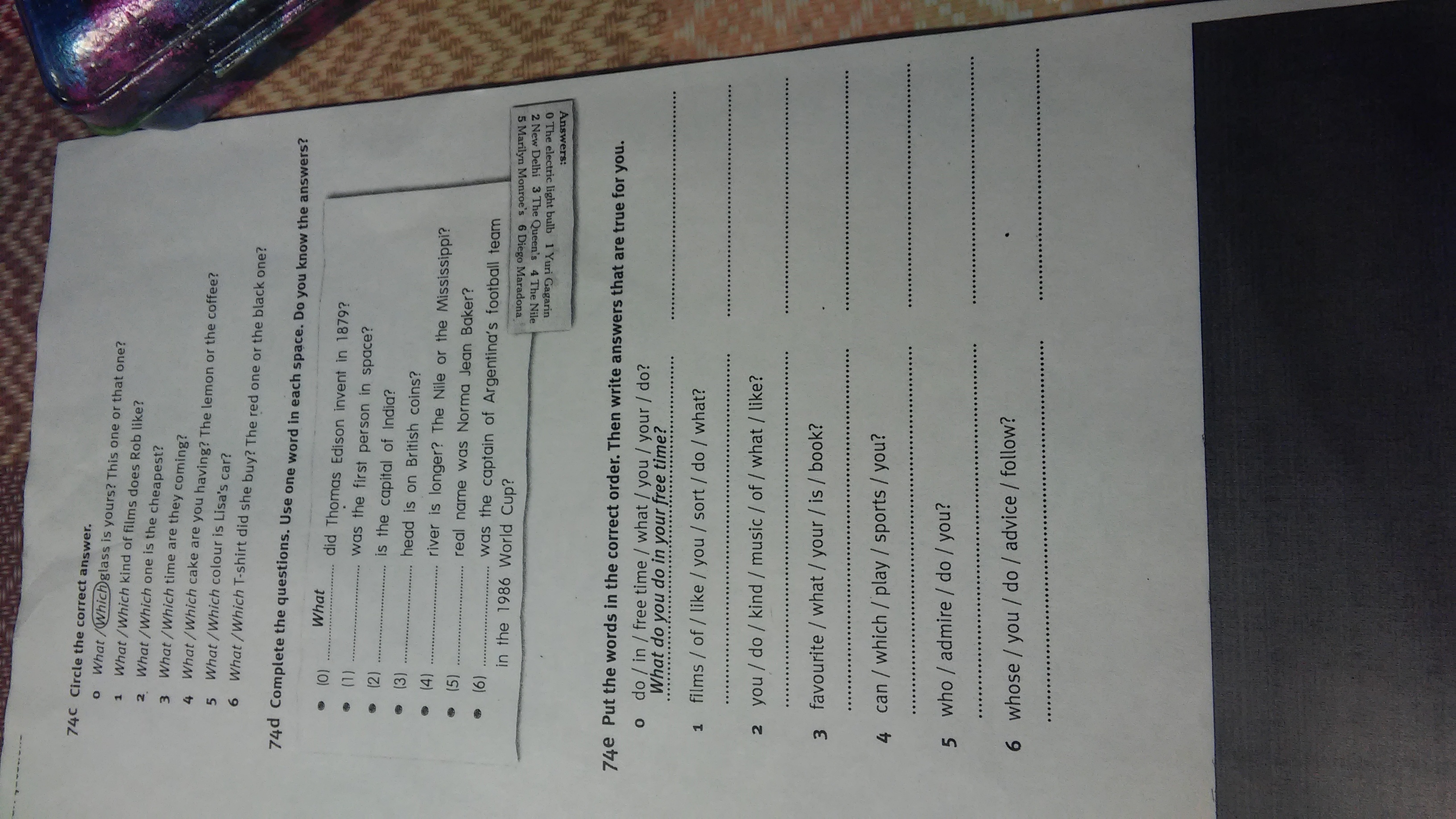 74 d who, what, whose, which, which, who.
