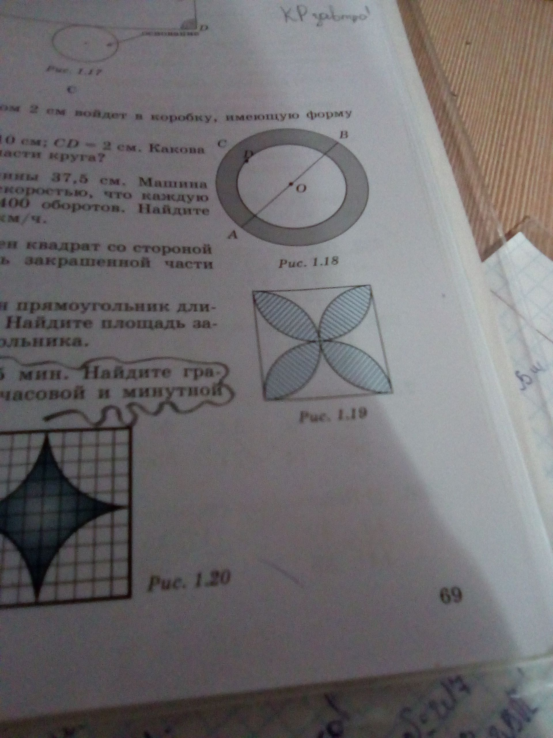 На рисунке 1.19 изображён квадрат со стороной 20 см Найдите площадь закрашенной части квадрата