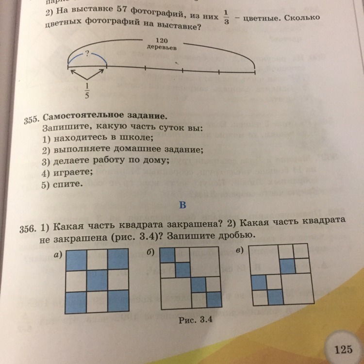 2) какая часть квадрата не закрашена (рис 3.4)? Запишите дробью.
