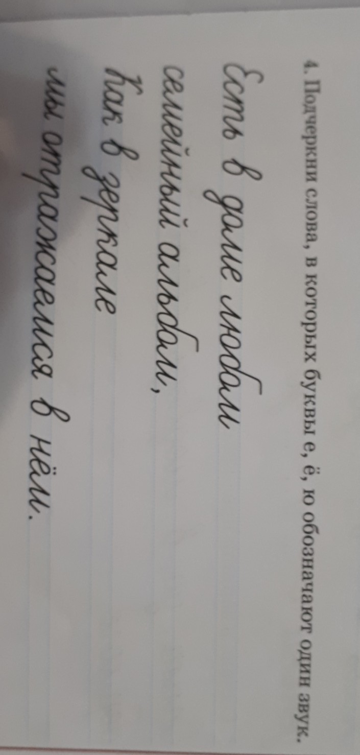 Доме, любом,семейный,зеркале,нём. Буквы е,ё,ю обозначают 2 звука если:
