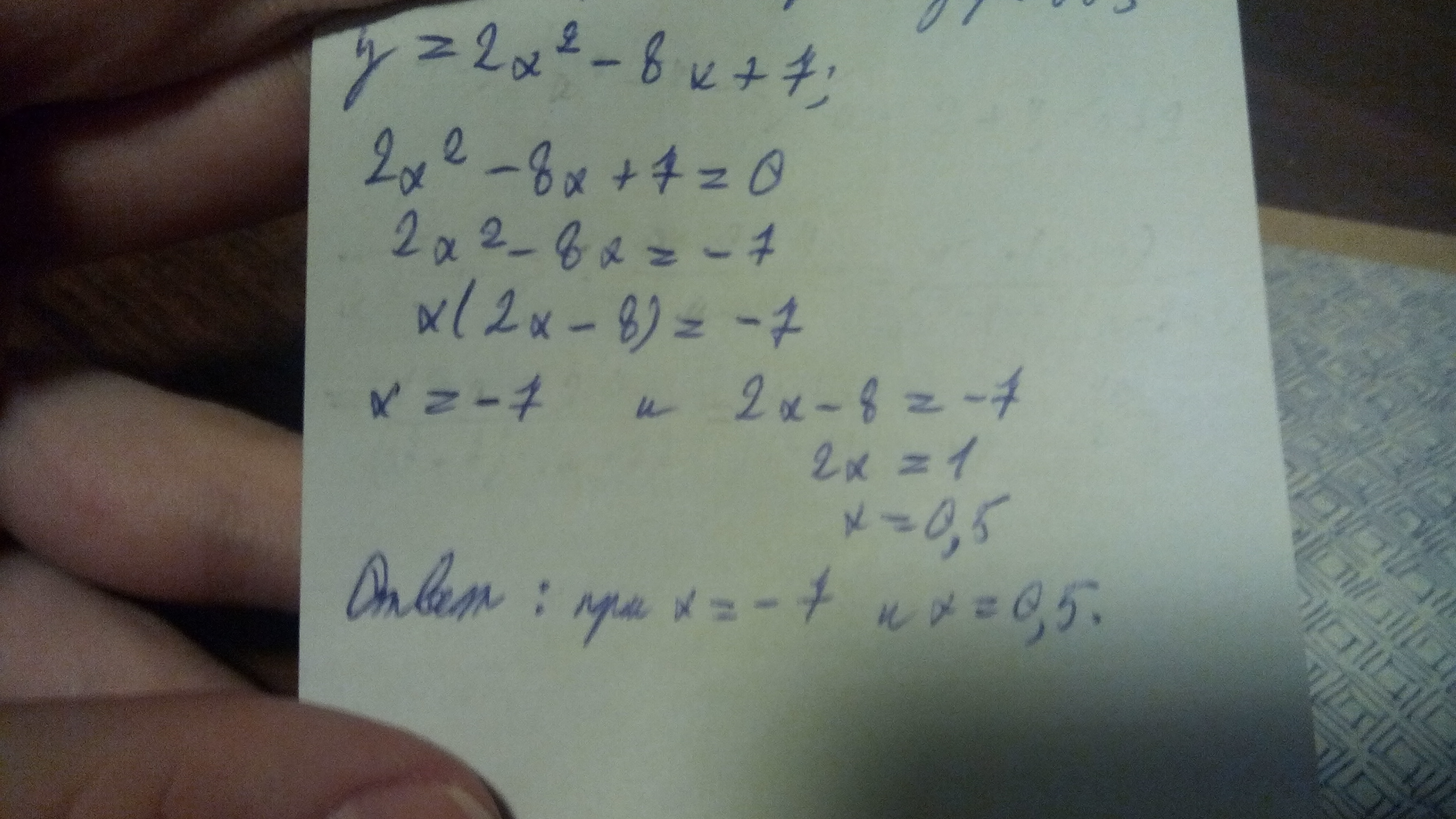 1. y= 2х² - 8х +7