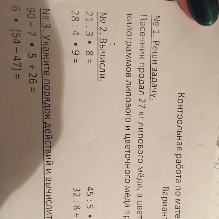 1 действие всегда либо× либо÷ смотря что стоит в переди. например. в этом примере стот впереди ÷ значит он будет 1. потом умножить. а потом прибавление
