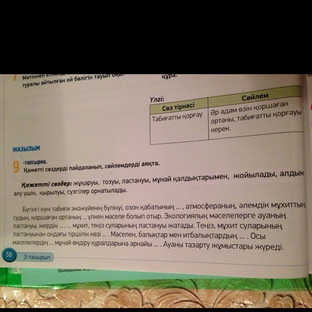 Қажетті сөздерді пайдаланып, сөйлемдерді аяқтау.