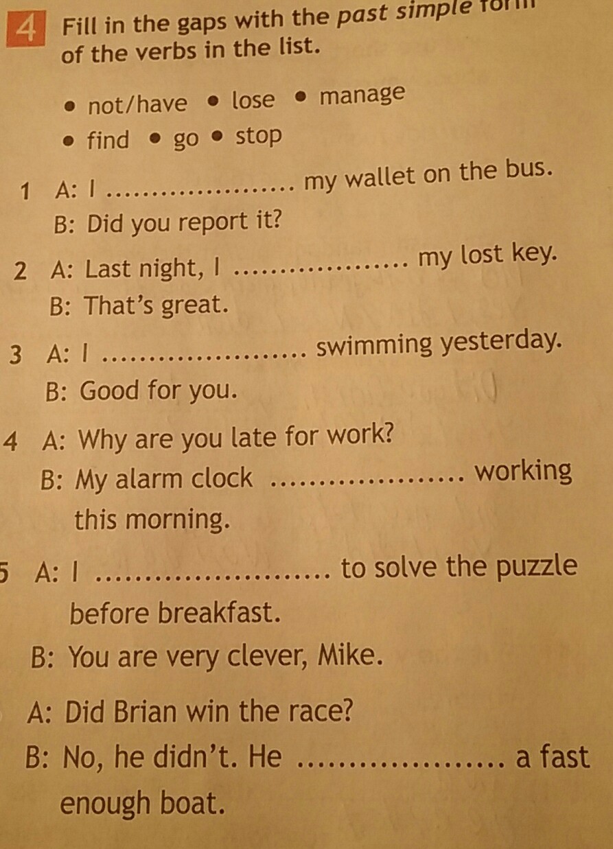 1. Lose 2. Find 3. Go 4. Stop 5. Have 6. Don't have