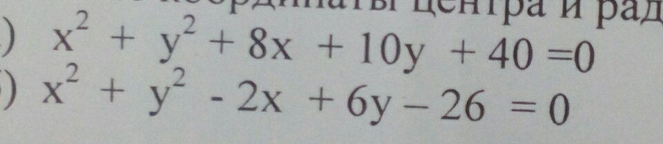 укажите координаты центра и радиуса