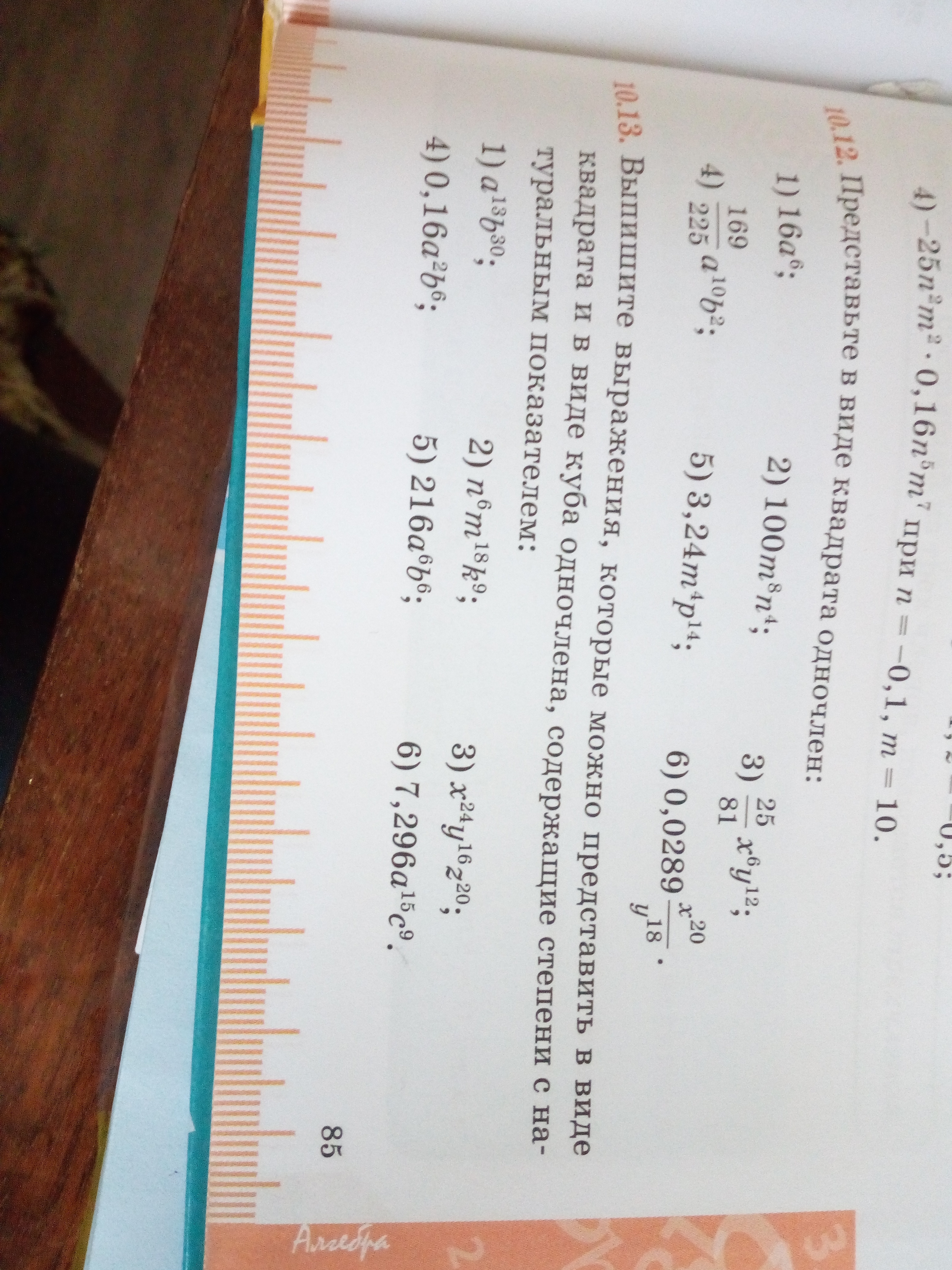 В № 10.13 1) И 6) НЕВОЗМОЖНО ПРЕДСТАВИТЬ В ВИДЕ КВАДРАТА ИЛИ КУБА ОДНОЧЛЕНА