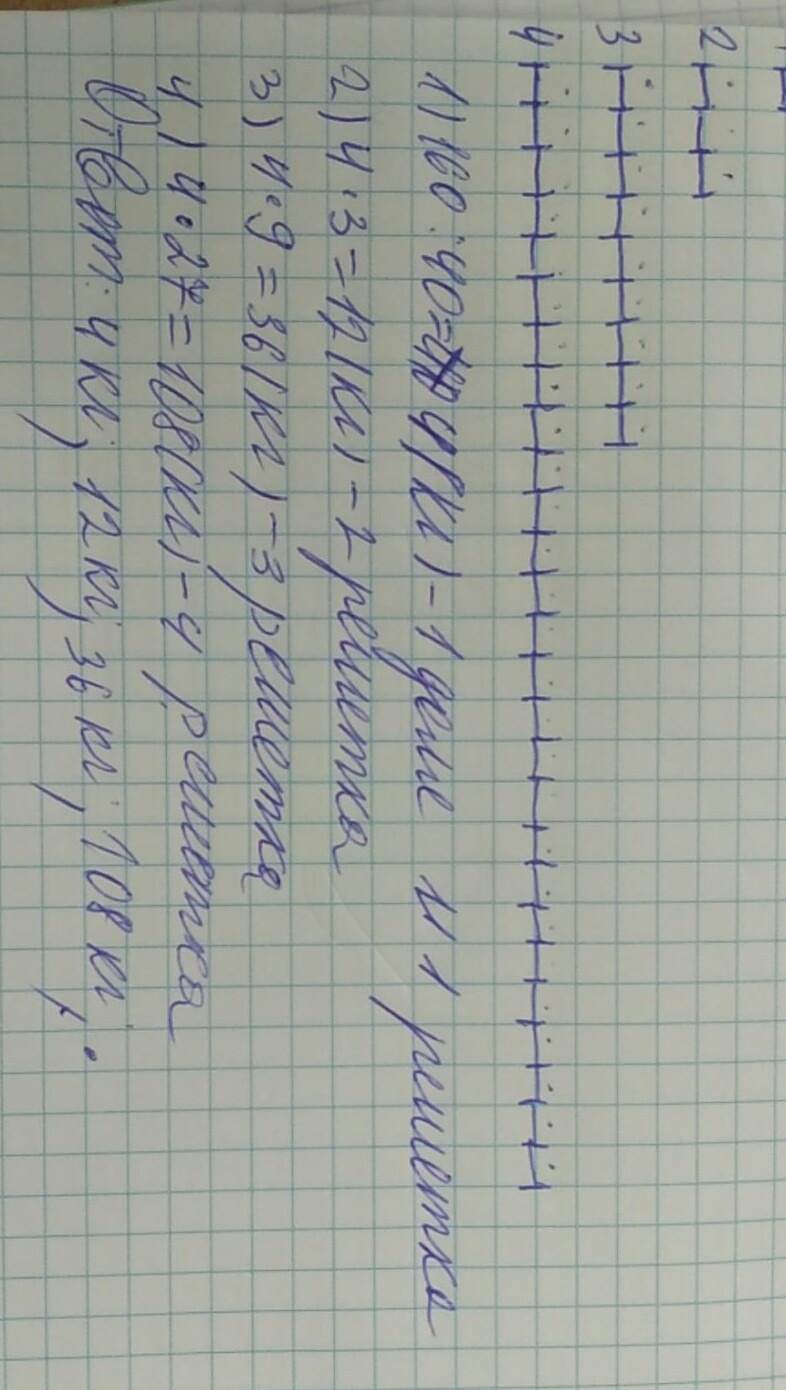 Масса четырех железных решеток 160 кг, причем вторая решетка у 3 раза тяжелей от первой, третья - у 3 раза тяжелей от второй, а четвертая- у 3 раза тяжелей от третей. Найди массу каждой решетки?