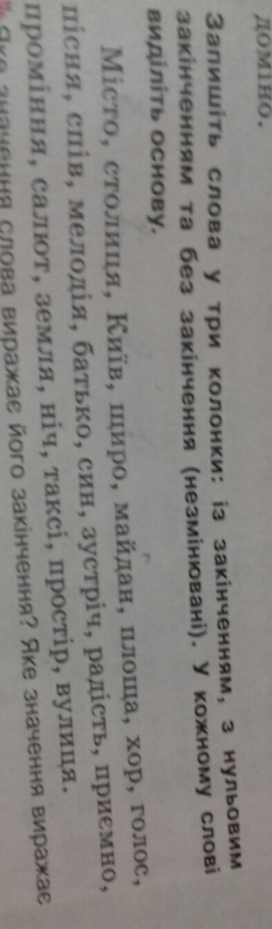 Із закінченням: місто, столиця, площа, пісня, мелодія,батько, проміння, земля, вулиця