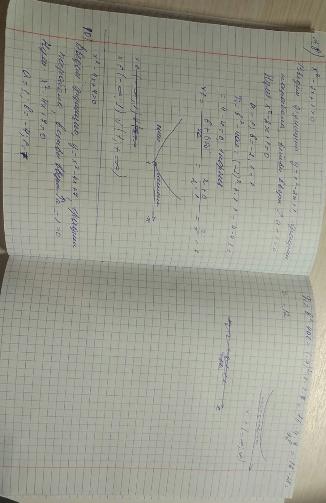 8) график парабола, ветви вверх.