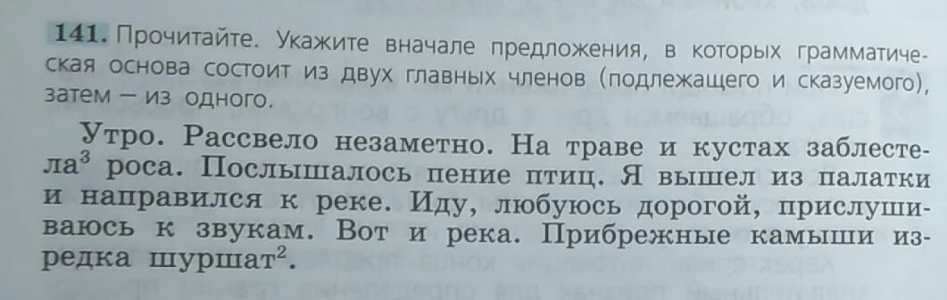 прочитайте укажите вначале предложения в которых грамматическая основа состоит из 2 главных членов подлежащего и сказуемого затем из 1