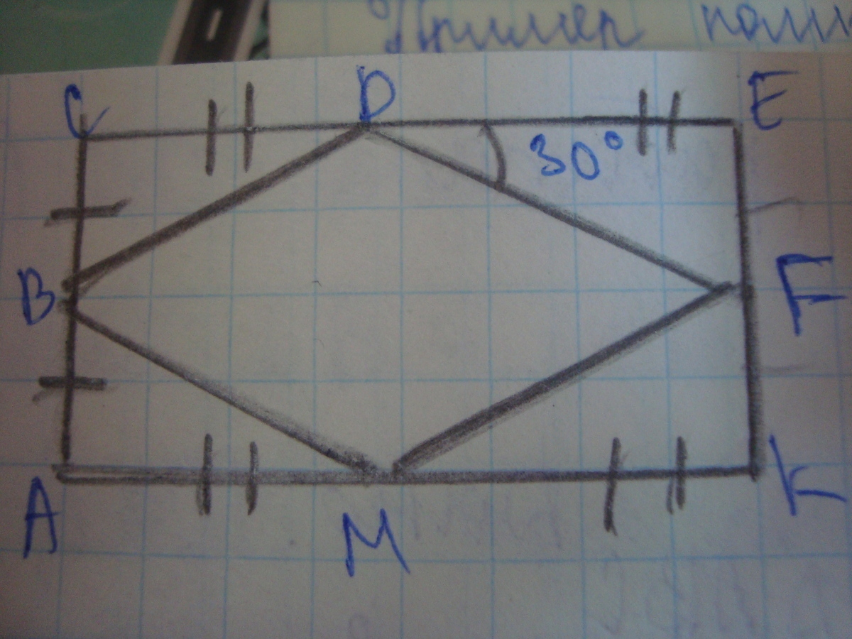 Треугольники ВСД, ВАМ, ФЕД, ФКМ равны. Значит все стороны данного четырехугольника равны. Значит периметр равен 4* ВД=4*10=40 см