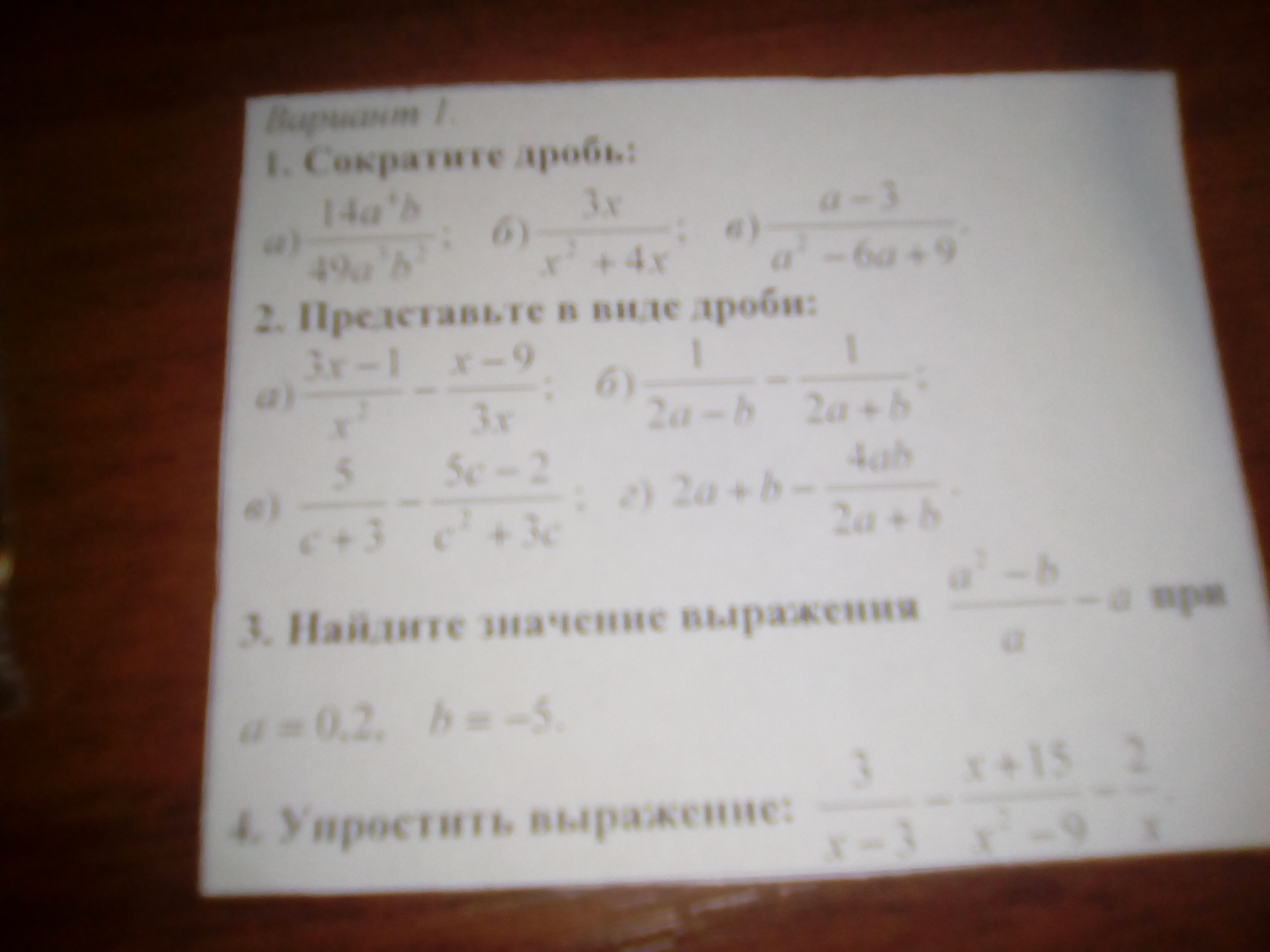 4) 3x (x+3)-x (x+15)-2 (x-3)(x+3)/x (x-3)(x+3) = 3x^2+9x-x^2-15x-2x^2+18 / x (x-3)(x+3) = -6x+18 / x (x-3)(x+3)= -6/x (x+3)= -6/x^2+3x