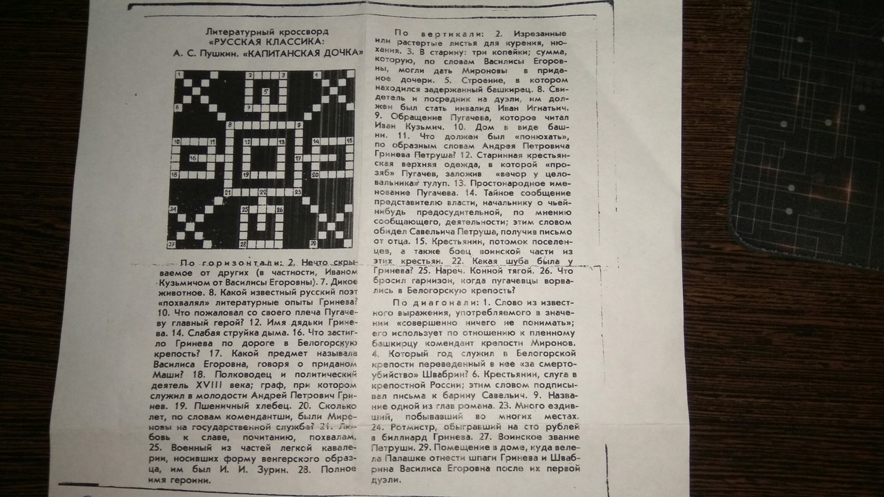 Литературный Кроссворд "Русская классика: А.с Пушкин. "Капитанская дочка"