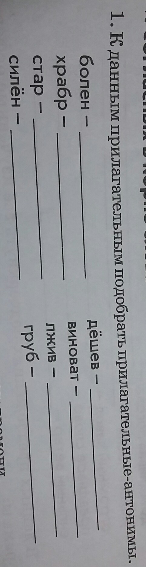 Болен-здоров, храбр-труcлив,cтар-молод,cилён-cлаб,дешёв-дорог,виноват-не виноват,лжив -правдив ,груб-нежен.