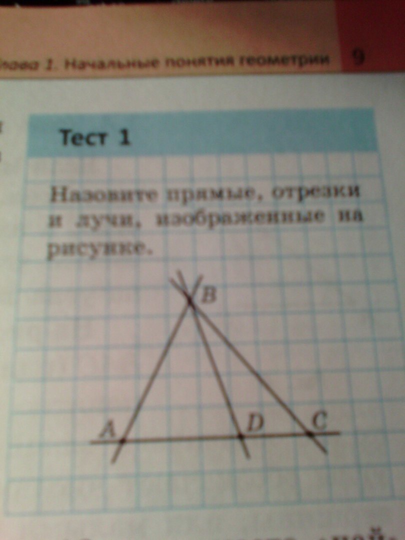 Лучи: А,D,C(луч это часть прямой, которая имеет начало, но не имеет конца, её можно бесконечно продолжать только в одну сторону)