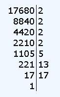 б) 17680 = 2⁴ · 5 · 13 · 17