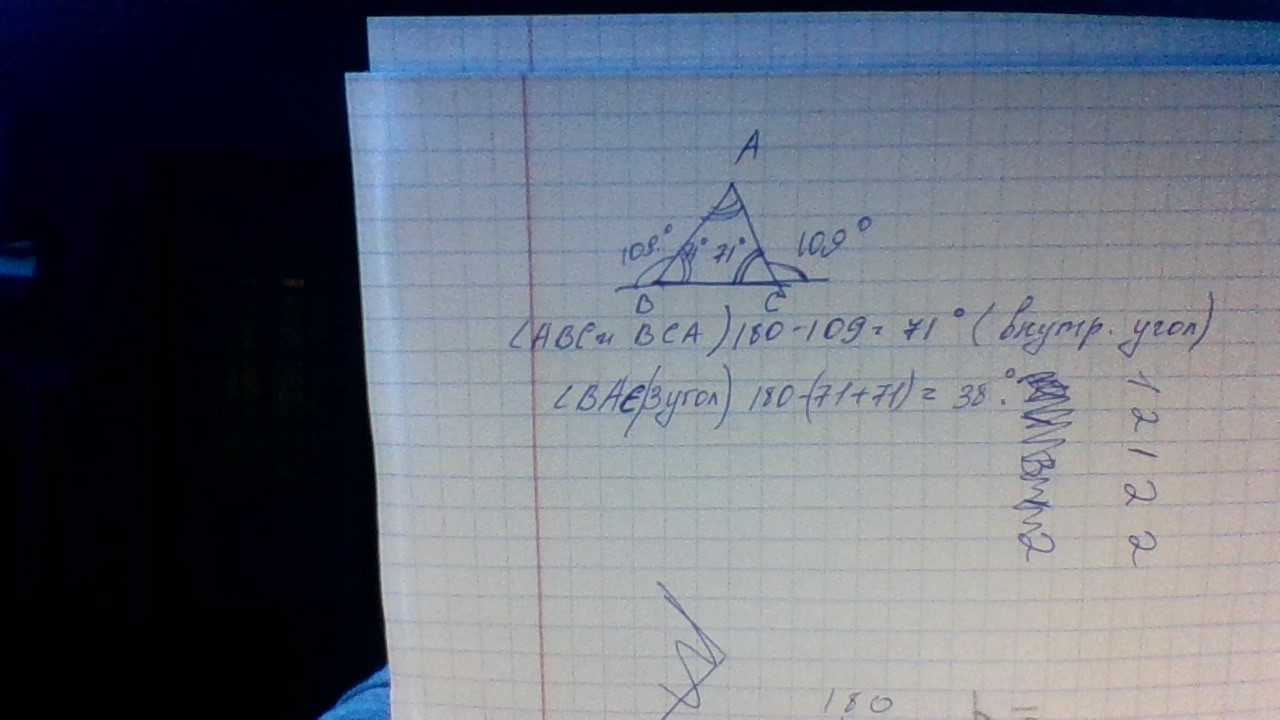 один из внешних углов равнобедренного треугольника равен 109 градусам. найти углы треугольника