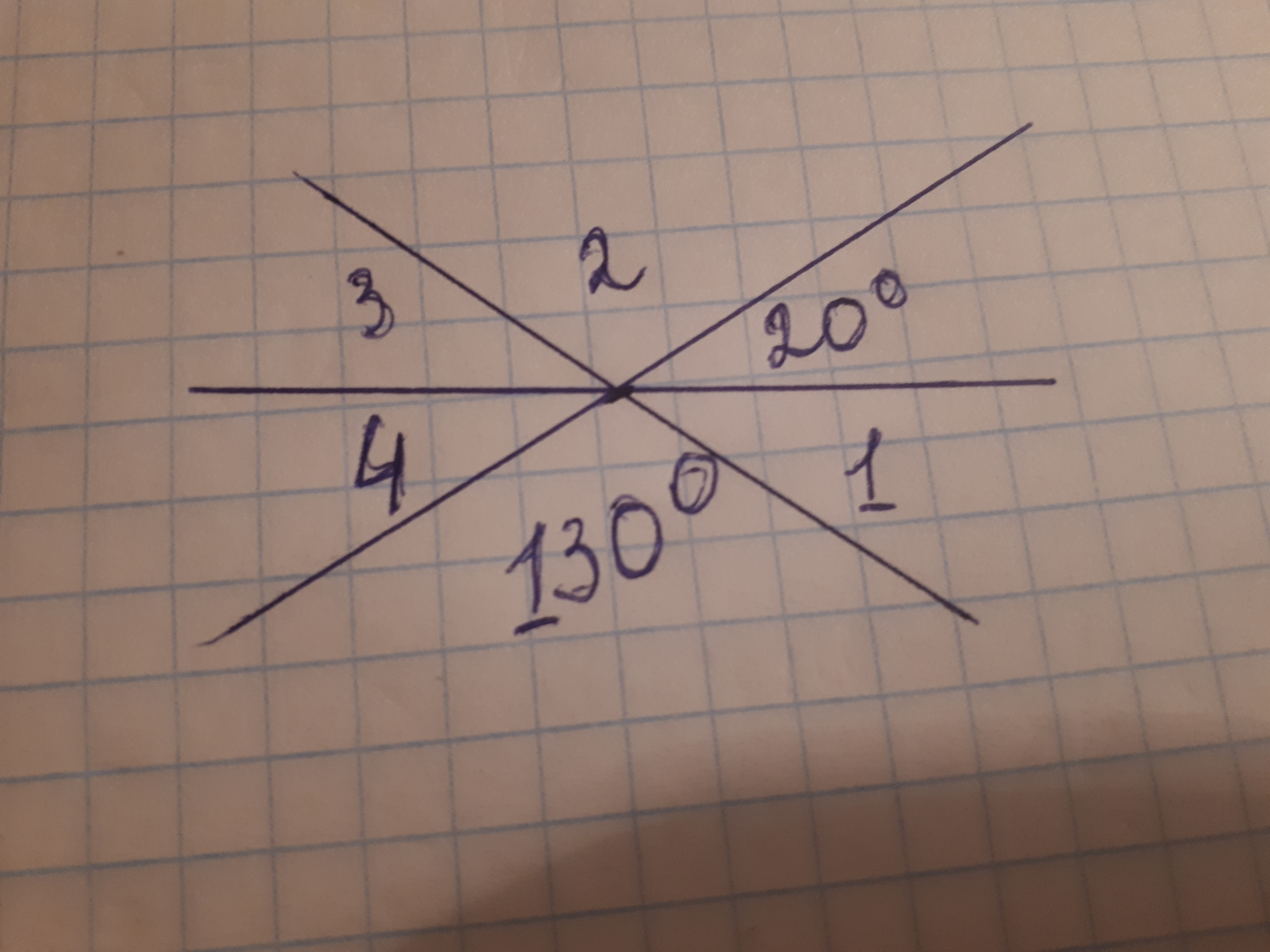 Тогда <1=180°-130°-20°=30° (так как развернутый угол равен 180°).