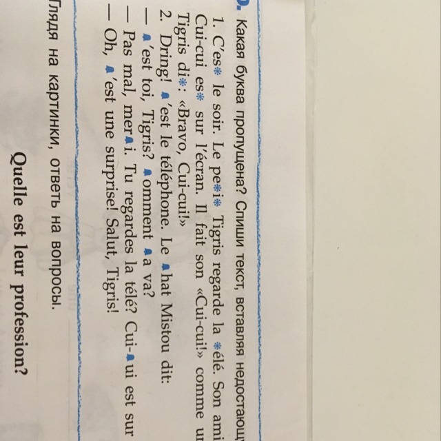 1. C'est le soir. Le petit Tigris regarde la télé.Son ami Cui-Cui est sur l'écran....... Tigris dit:......