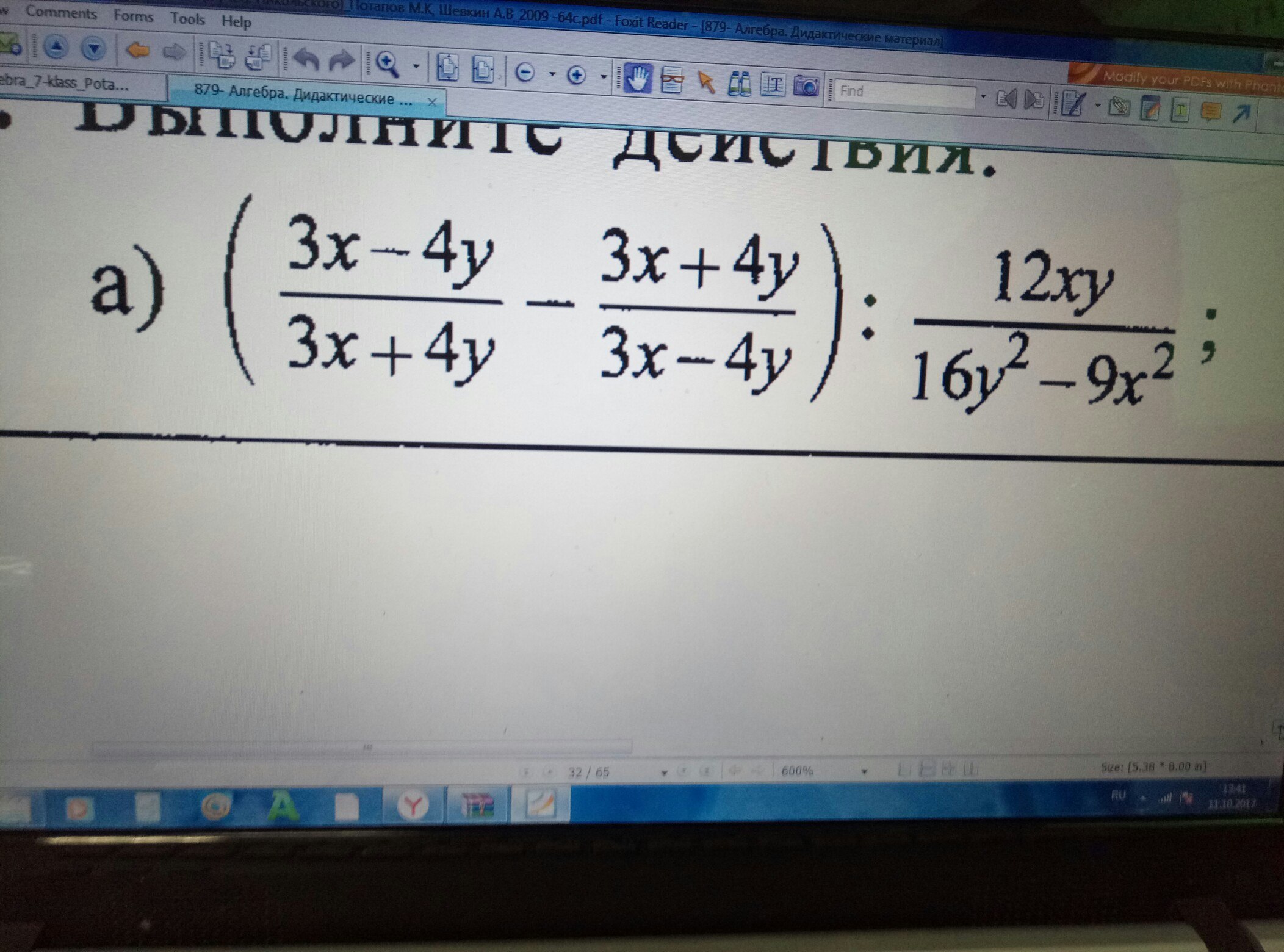 (3х - 4у) / (3 х + 4у) - (3х+4у) /(3х-4у) / 12у/(32у-81х)= 3х - 4у/3х+4у-3х-4у /3х-4у /12у /32у -81х=3 х /3х - 3х/3х-81х -4у+4у-4у-4у/12у/32у=-две третьих икс- 767/96 у
