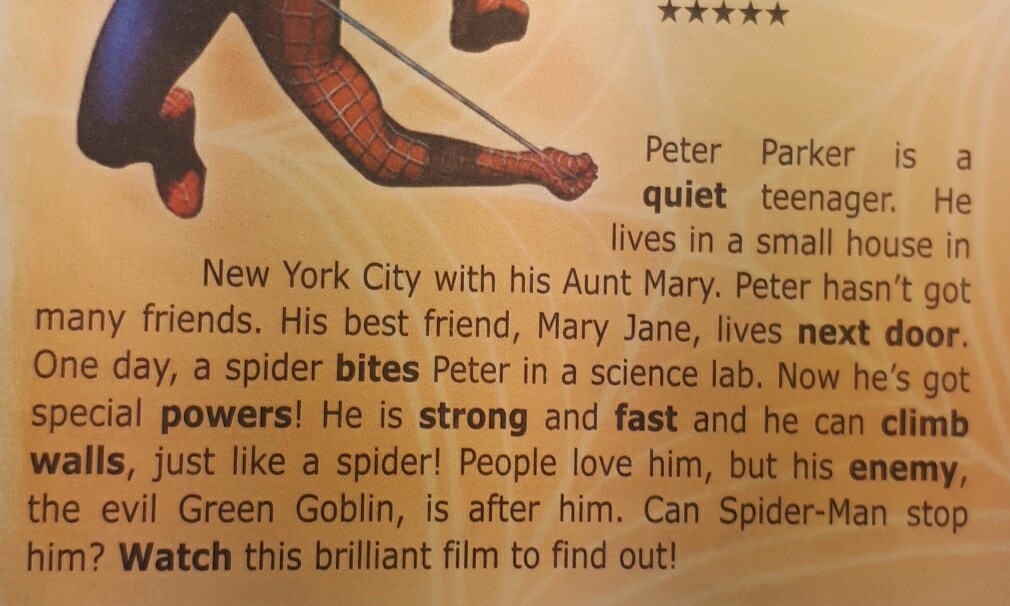 Питер Паркер это тихий подросток.Он живёт в маленьком доме в Нью Йорке с тетей Мэри. У него не было друзей. Его лучшая подруга Мэри Джэйн. Однажды Паук укусил Питера в научную лабораторию. Сейчас у него есть специальные полномочия. он сильный и быстрый, и он может подниматься по стенам, как паук. Его все любят но у него есть враг Зелёный Гоблин . Сможет Человек паук остановить его? Посмотри этот бриллиантовый фильм