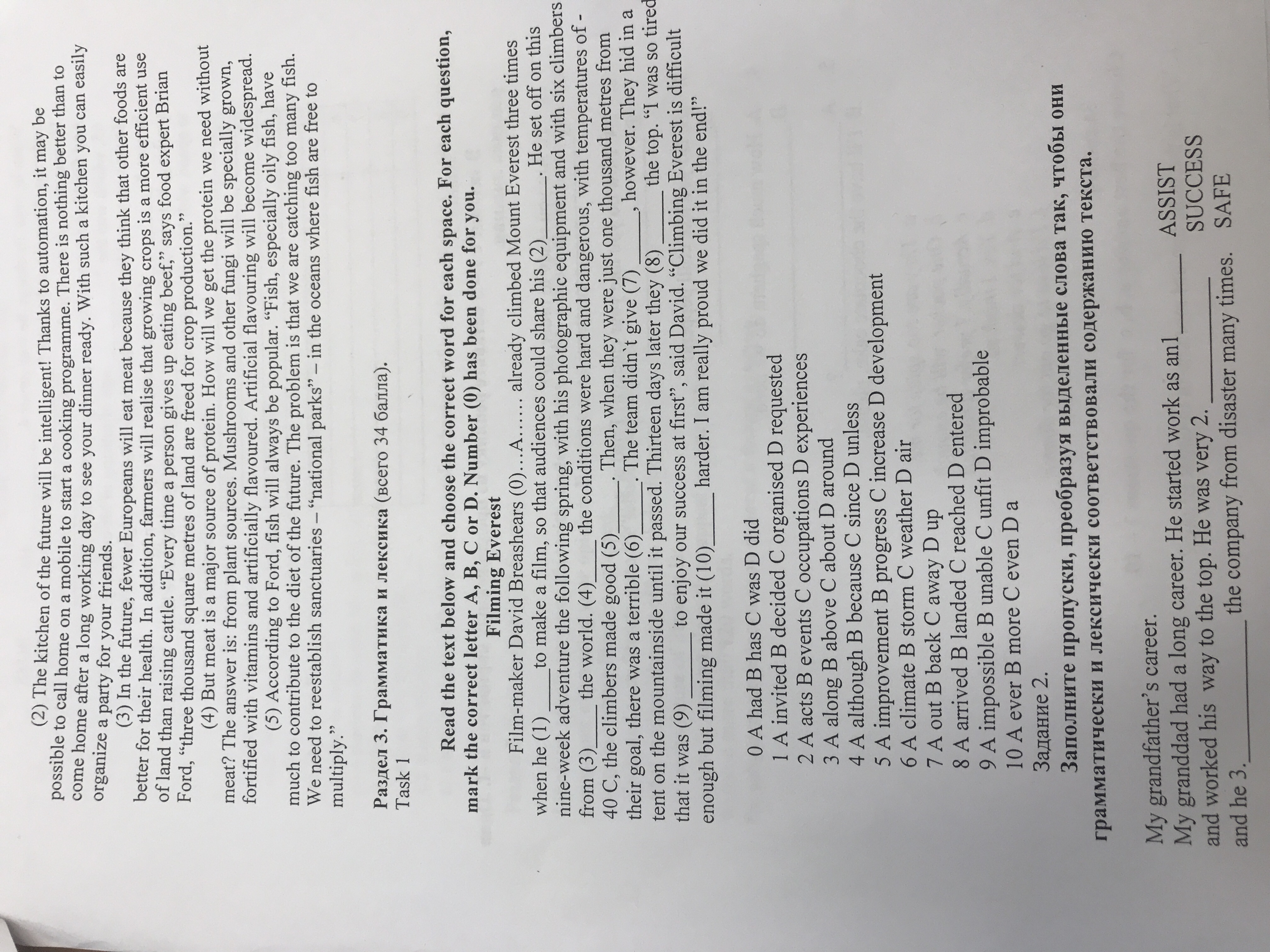 В последнем задании: 1)Assistant 2) Successful 3) Safety