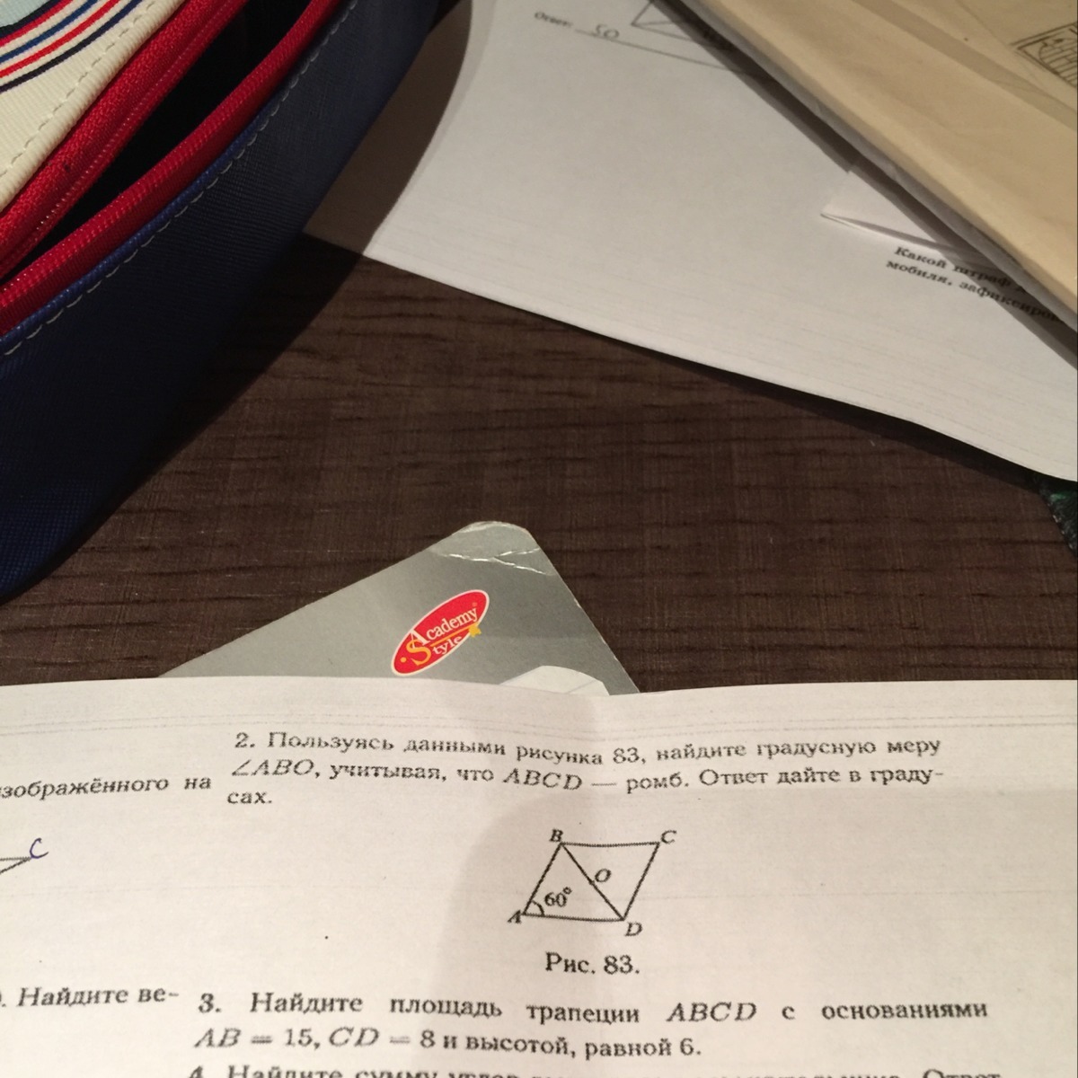 <ОАВ=30 градусов ( диагональ явл биссектрисой)
