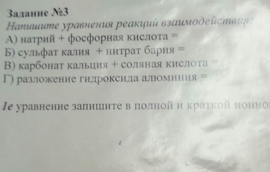 напишите уравнения реакций взаимодействия, срочно, пожалуйста