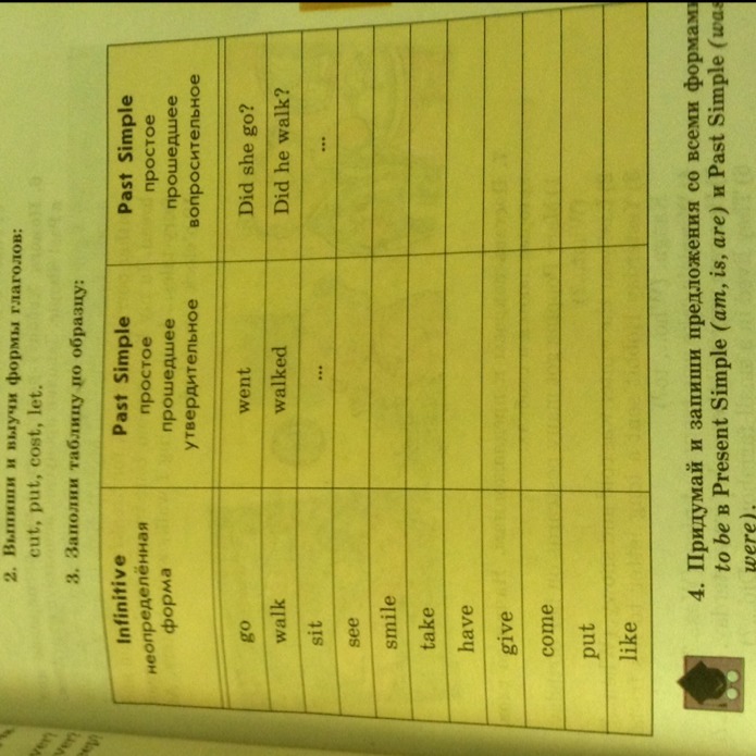 Заметьте, что здесь есть правильные и неправильные глаголы.