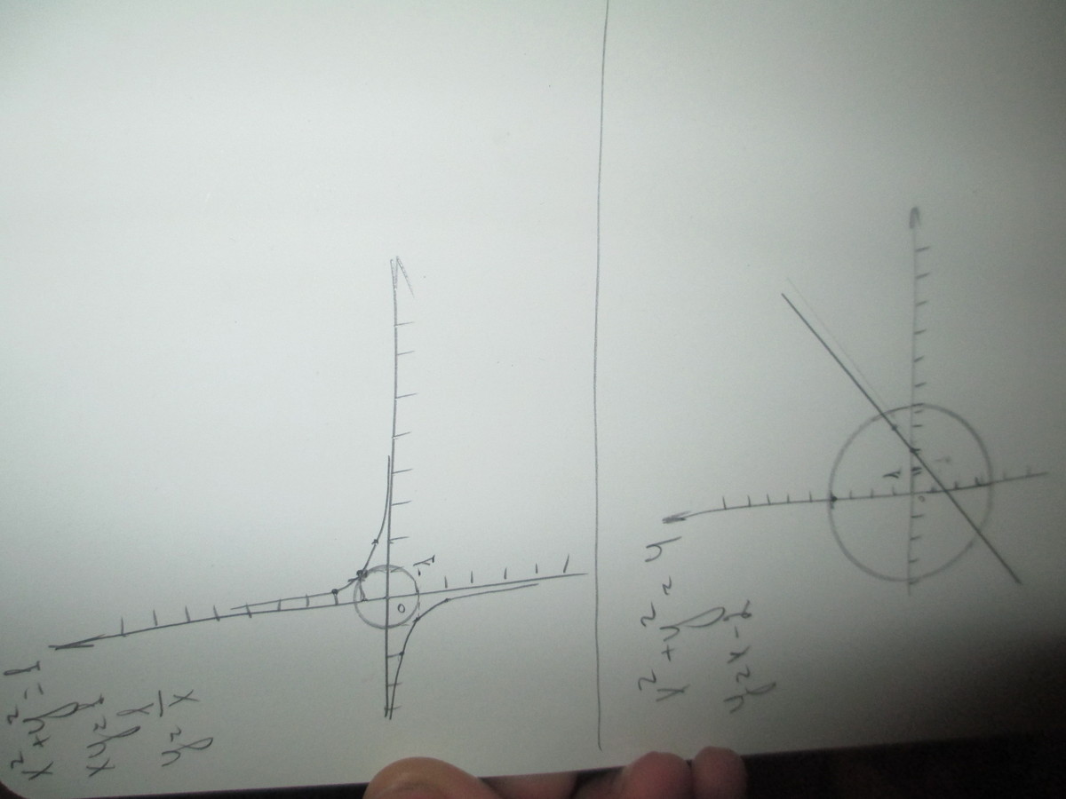функция x² + y²= 1 это окружность, y=x-2 прямая, xy = 1 бабочка,мне кажтся чертеж таким будет