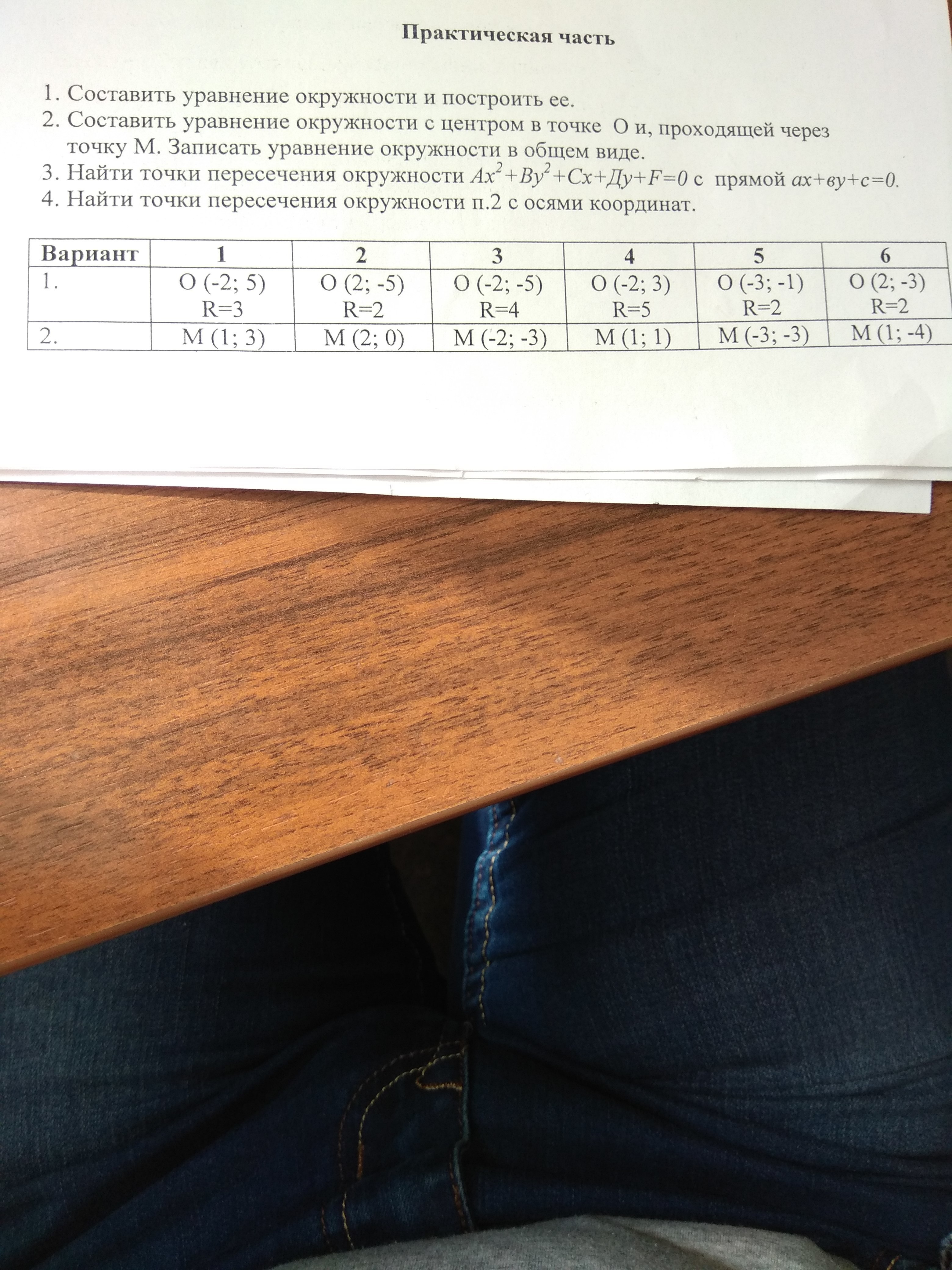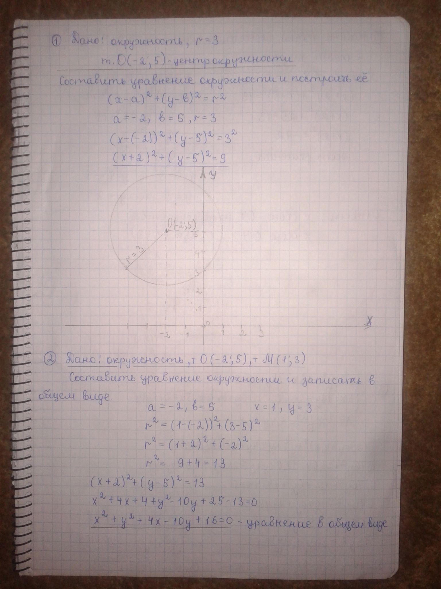 2. Составить уравнение окружности с центром в точке О и, проходящей через точку М. Записать уравнение окружности в общем виде.