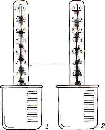 1. В сосудах находилась вода при температуре 50°С.