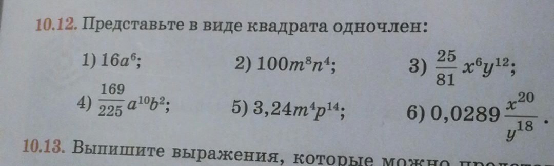 4)169/225a10b2=(13/15a^5b)^2