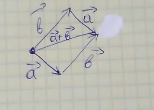 Ставишь точку. От этой точки откладываешь вектор a, затем от этой же точки откладываешь вектор b. Нет не от конца вектора, а от этой же точки. Затем уже от конца вектора b откладываешь вновь вектор а, а от конца первого вектора а откладываешь вектор b. Получается паралеллограмм.